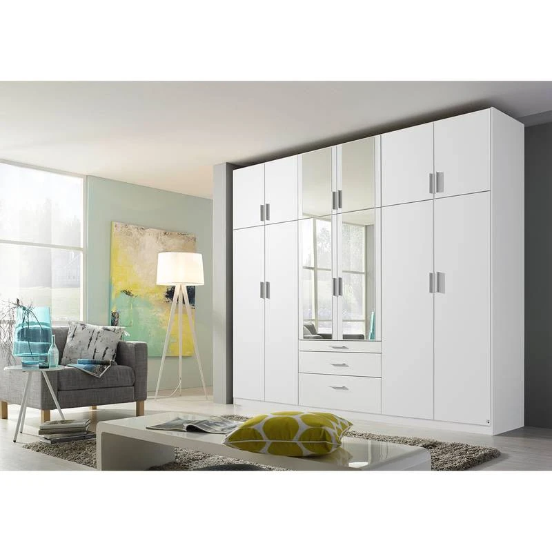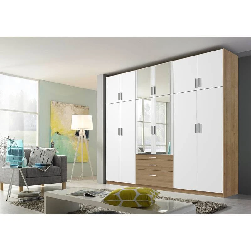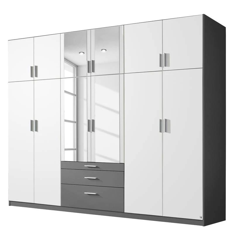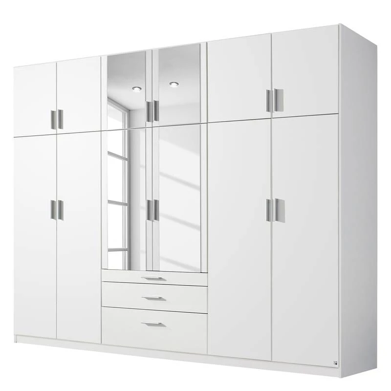 - 8 portes en bois, 4 portes avec miroir, 11 étagères et 2 tringles à vêtements