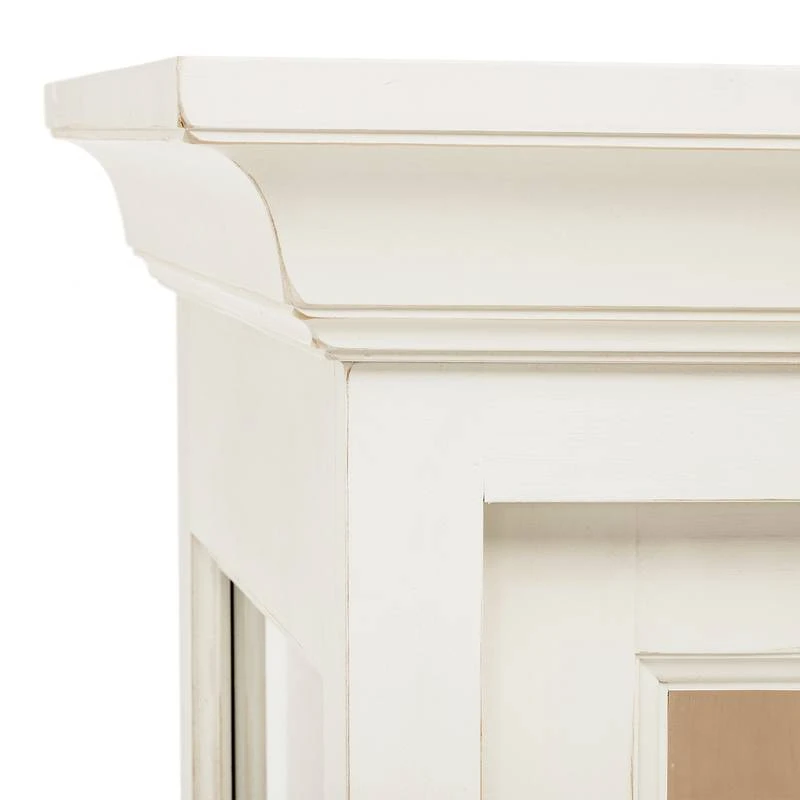 - 2 portes vitrées coulissantes, chacune avec 2 étagères en bois