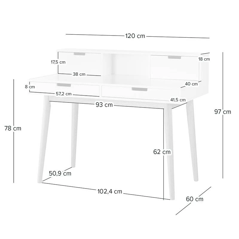 - Contenu de la livraison : Bureau, sans accessoires