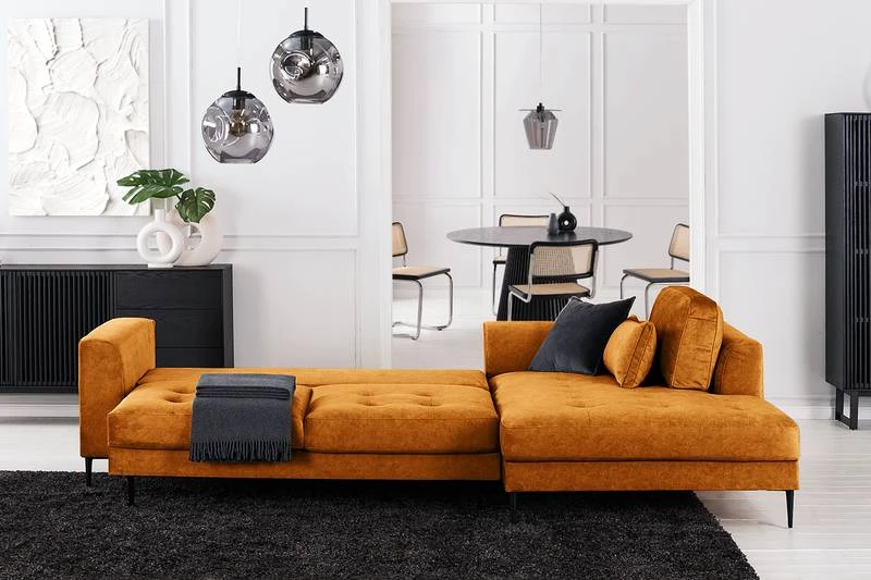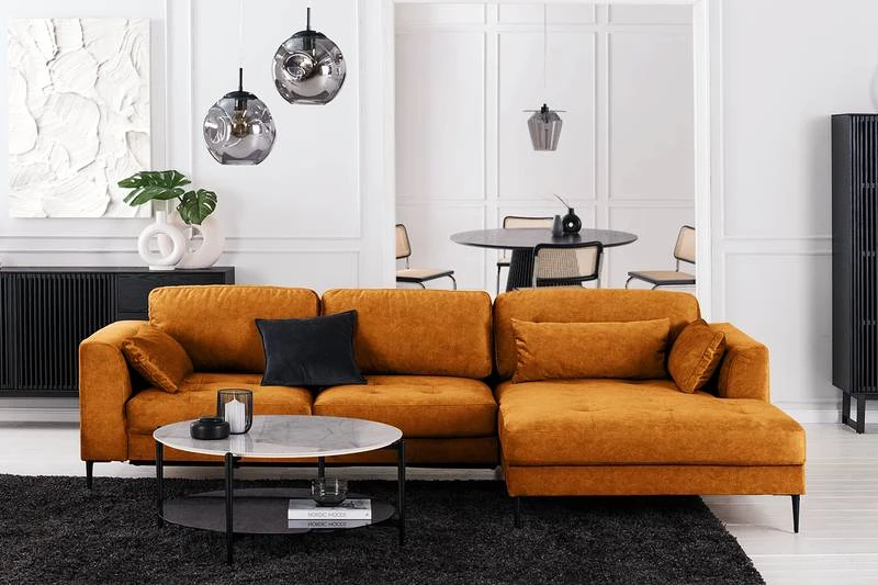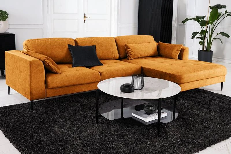 - Contenu de la livraison : Canapé d’angle avec trois coussins lombaires inclus