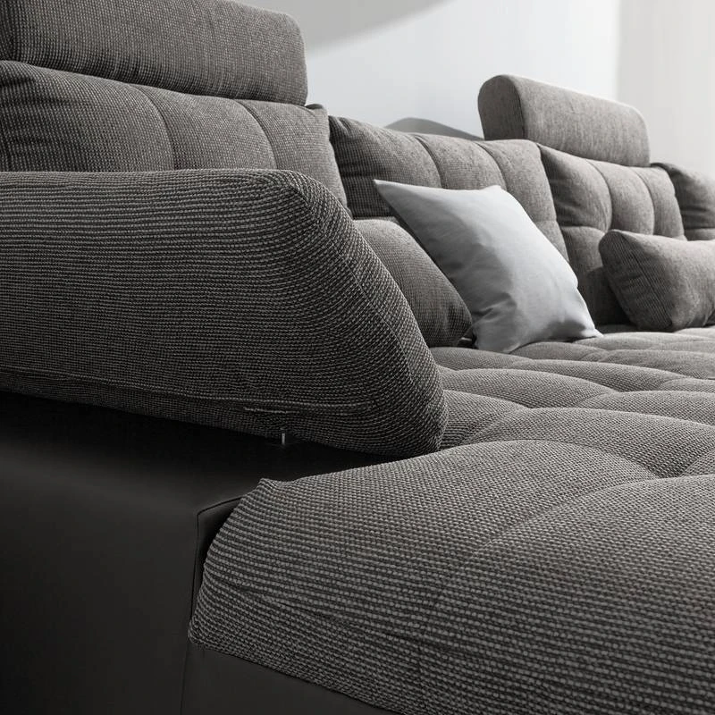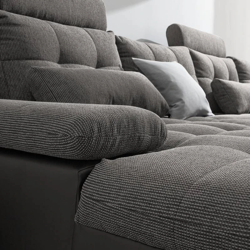 - Assise, dossier et coussins : tissu structuré doux et agréable, 100 % polyester