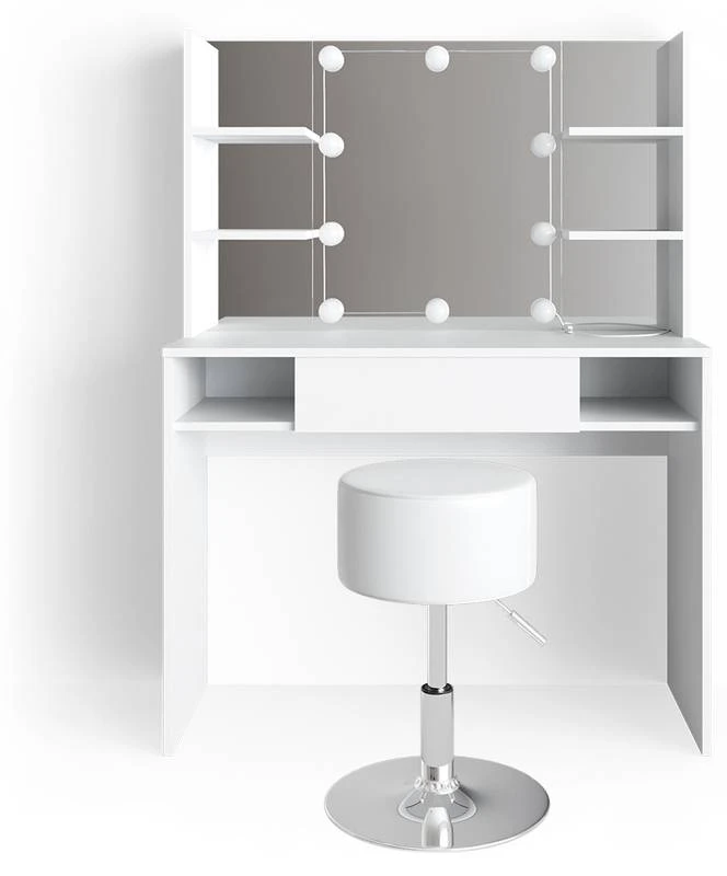 - Contenu de la livraison : • 1x coiffeuse avec 6x miroirs autocollants • 1x tabouret design • 1x guirlande lumineuse LED à 10 boules Décoration non incluse