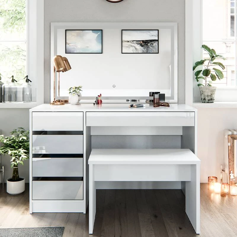 - Contenu de la livraison : • 1x coiffeuse• 1x miroir LED• 1x bancDécoration non incluse