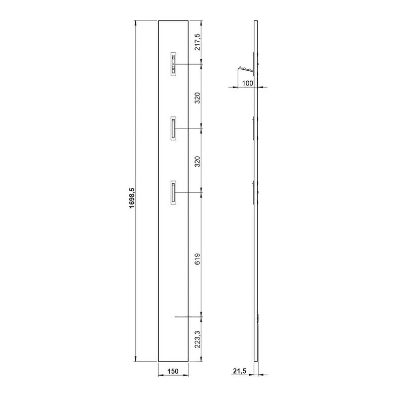- Porte-manteau : 15 x 170 x 3 cm chaque