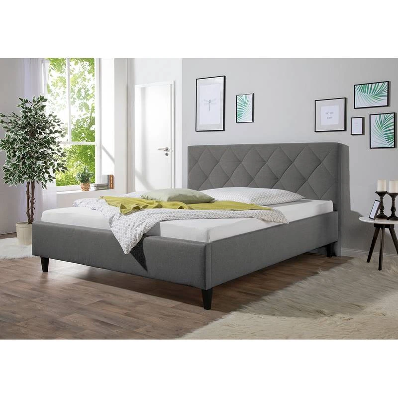 - Structure en panneau aggloméré, 4 pieds en bois de hêtre, vernis noir, environ 15 cm de haut, tissu structuré (100% PES)