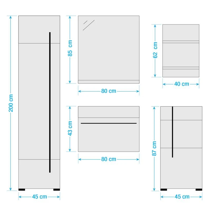- Colonne de salle de bain (L x H x P) : 45 x 200 x 35