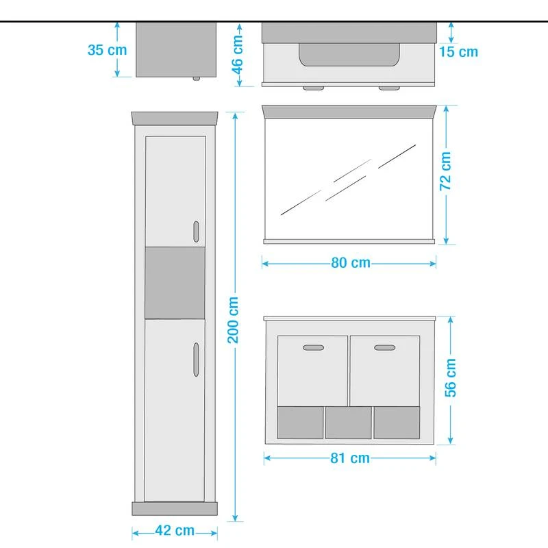 - Meuble avec vasque (LxHxP) : 81 x 56 x 46 cm