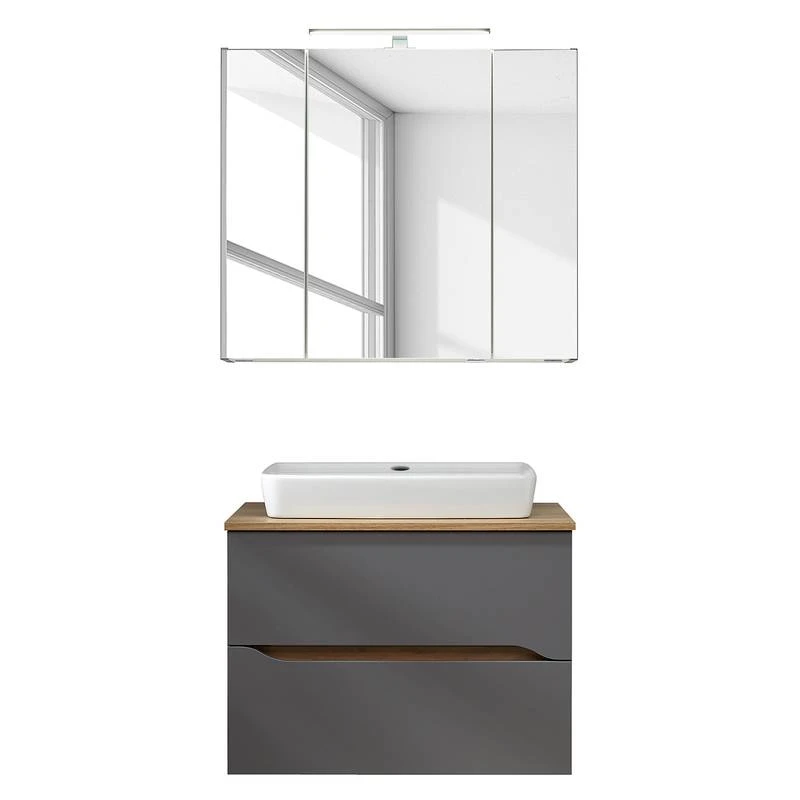 - Contenu de la livraison : Salle de bain comprenant 1 meuble avec vasque en céramique et 1 armoire de toilette avec éclairage