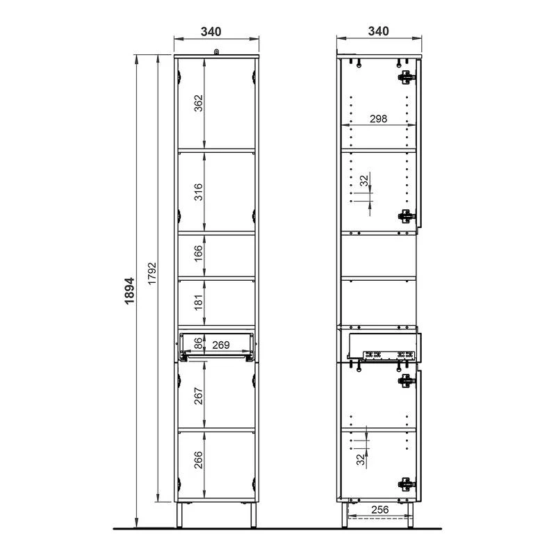 - Colonne de salle de bain : 34 x 190 x 34 cm