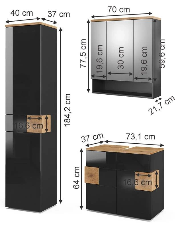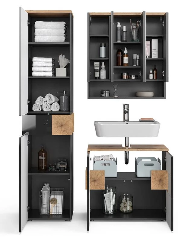 - Contenu de la livraison : • 1x meuble sous-vasque• 1x armoire de toilette Décoration non incluse