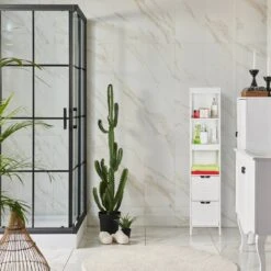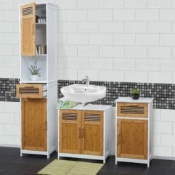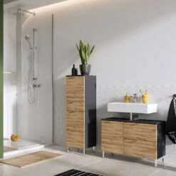 - Contenu de la livraison : 1x armoire basse pour lavabo, 1x armoire haute, 1x commode (sans décoration)