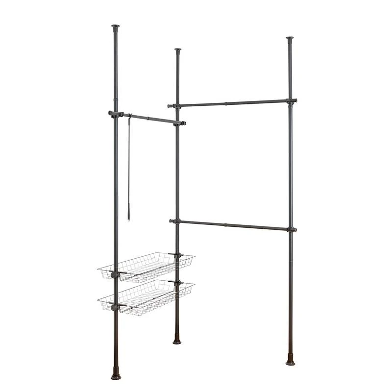 - Système de rangement réglable individuellement avec 3 portants à vêtements réglables en hauteur en continu